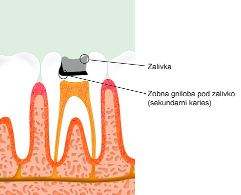 Špranja pri netesni obrobni zapori pa omogoča nastanek kariesa pod plombo (sekundarni karies).